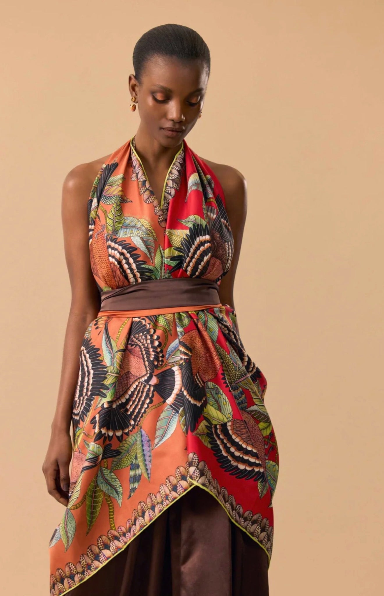 Hoopoe Hop silkeskjerf, dobbeltsidig Rust 90 cm