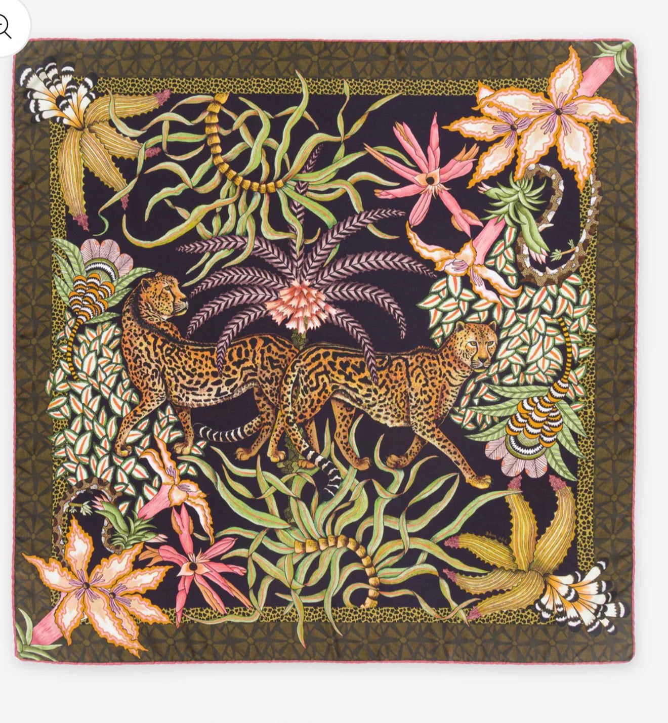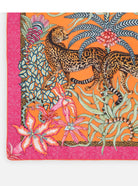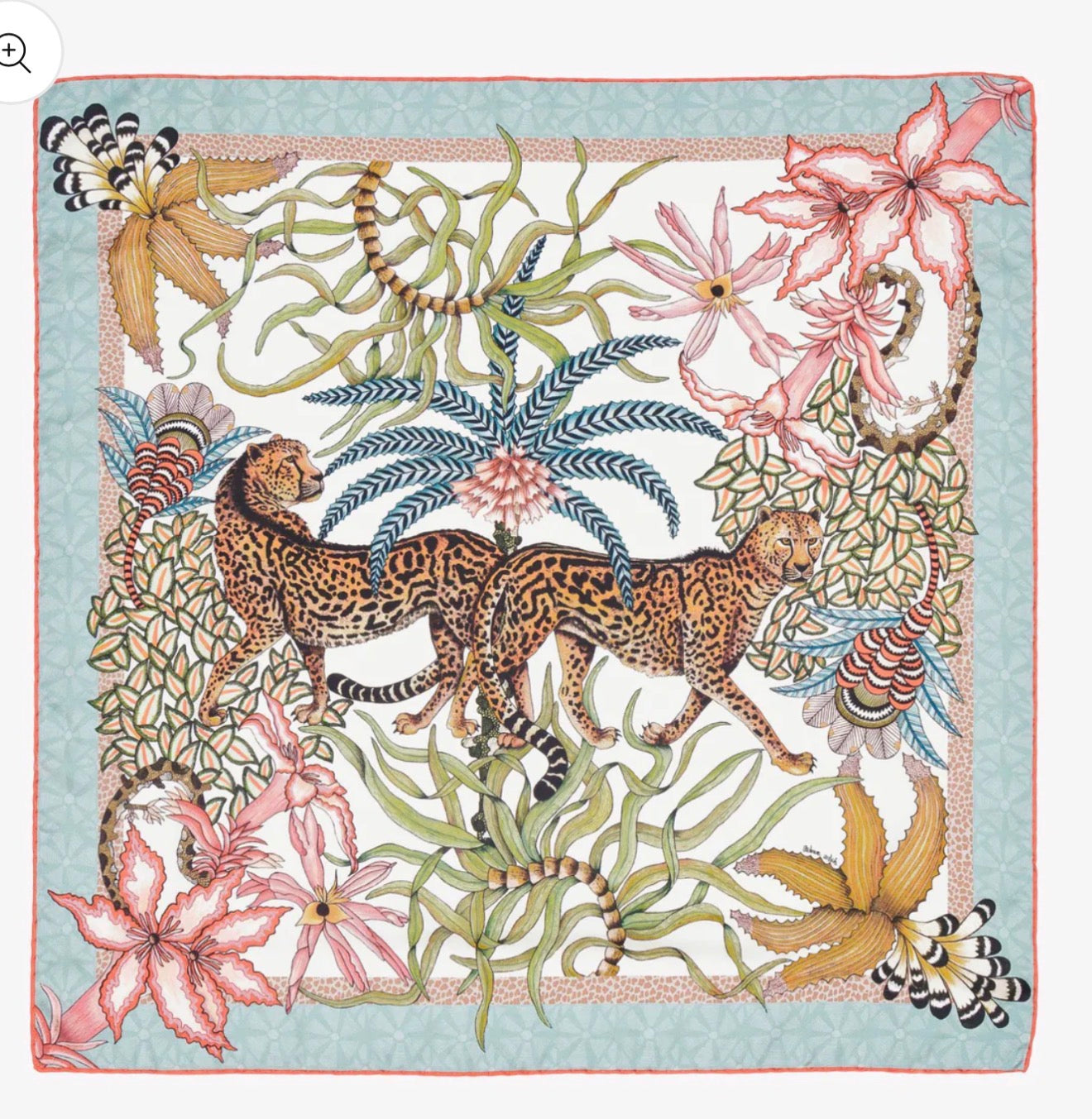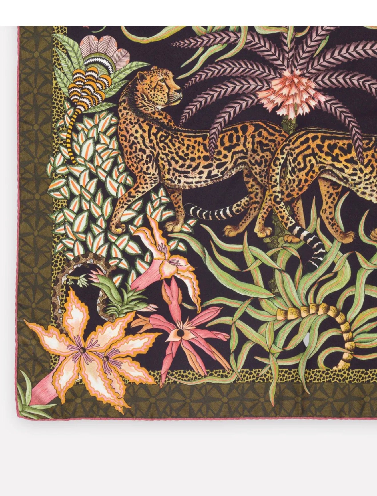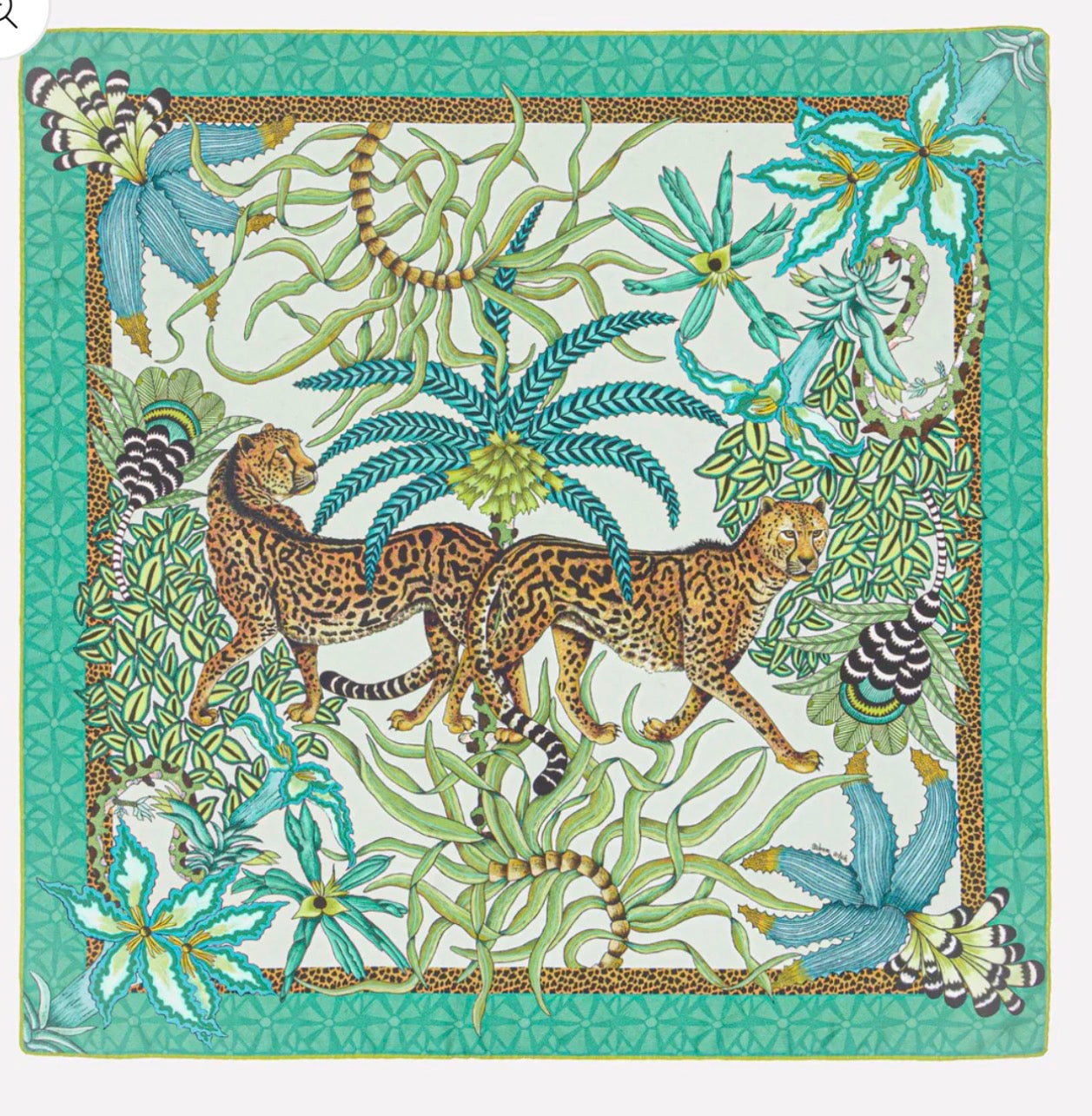 Omslutt deg med kunst, historie og eleganse. Sabie Kings silkesjal, er inspirert av den majestetiske Sabie King Cheetah. Et sjeldent, og fascinerende dyr først observert i Zimbabwe. Motivet, hvor to geparder beveger seg harmonisk blant aloe og impala-liljer, symboliserer forbindelse, styrke og skjønnhet i naturen.