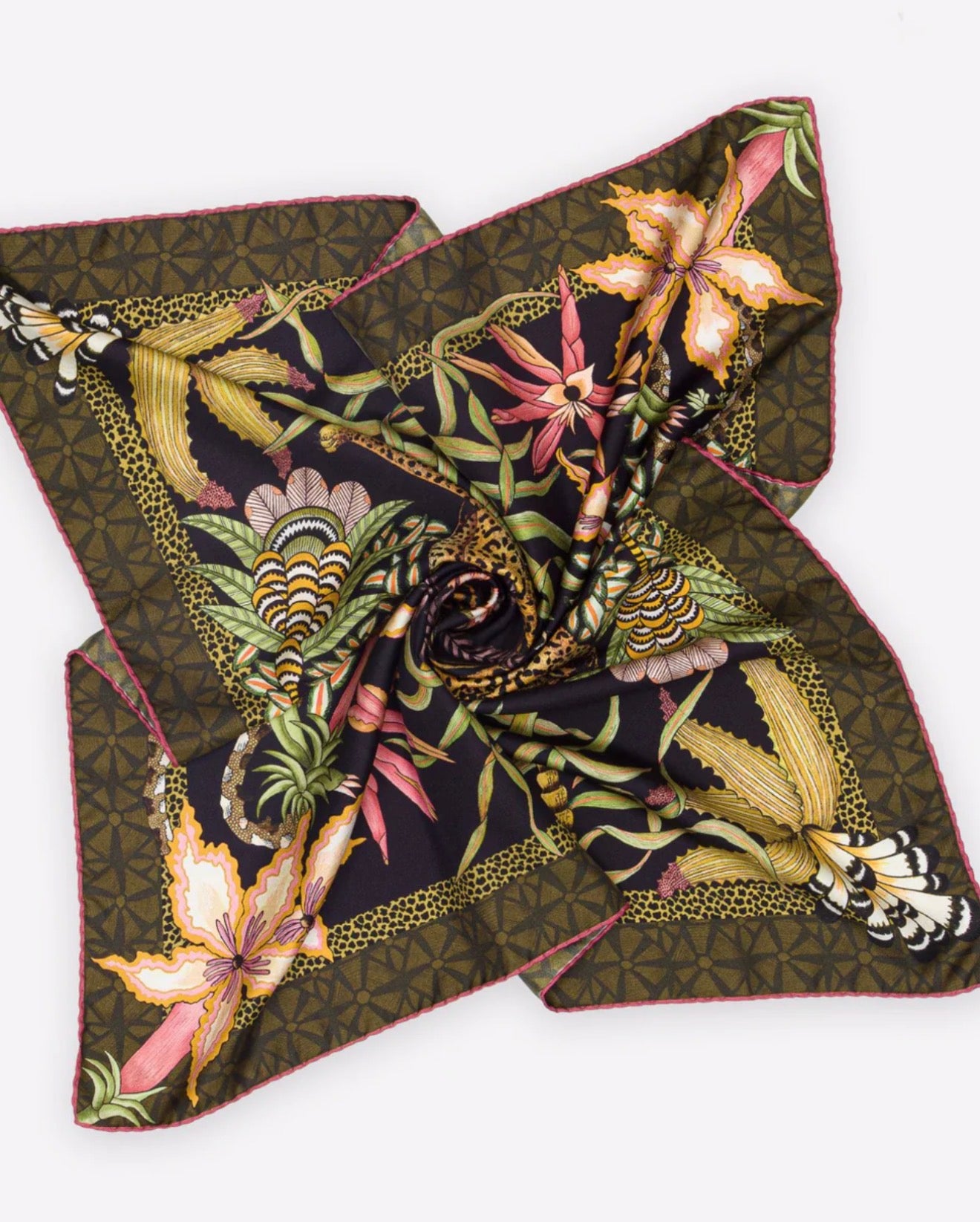 Laget i luksuriøs silke med håndtegnet design fra Ardmore, er dette mer enn et skjerf. Det er et bærbart kunstverk. Det lette og myke materialet faller elegant og kan styles rundt halsen, over skuldrene, i håret eller på vesken.