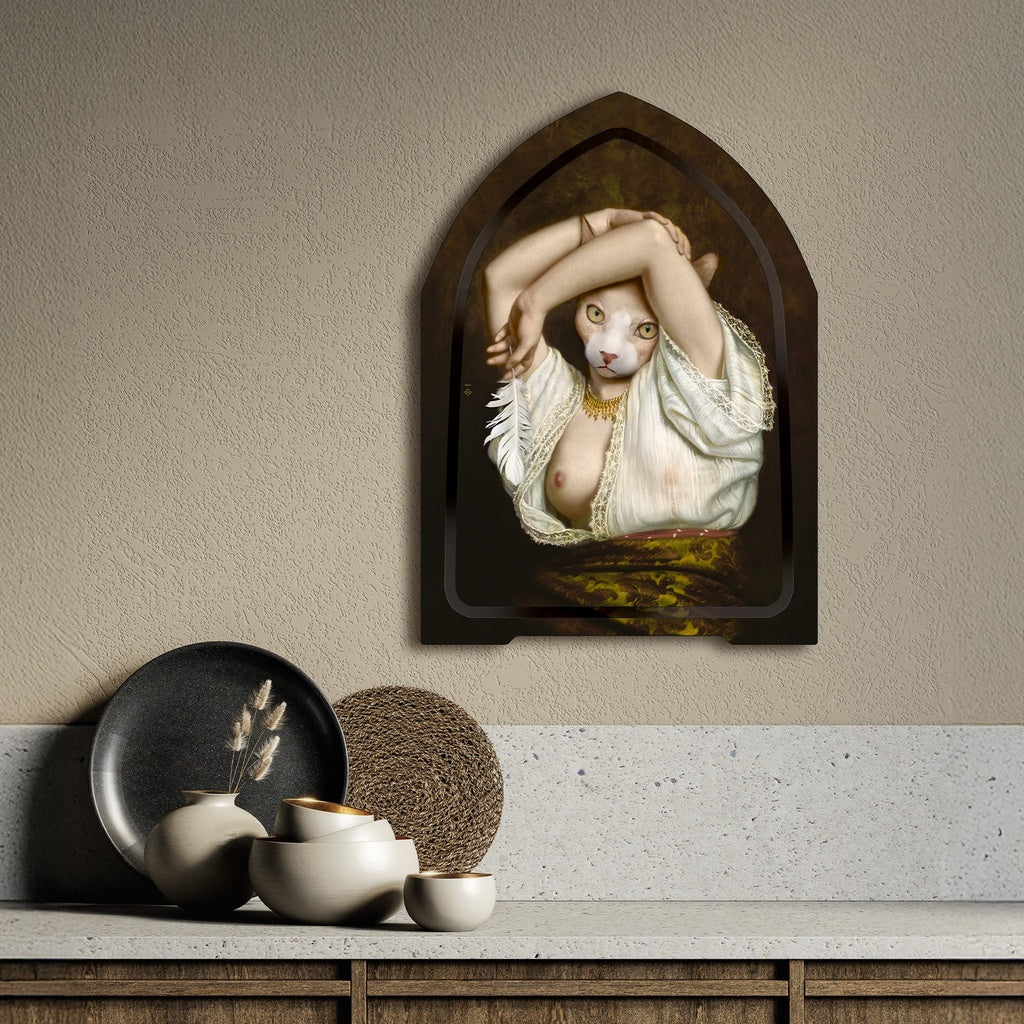 Zita er bohem, danser eller spåkone, opprørsk og full av liv. Hennes livlige, rampete blikk hinter til en uavhengig og dristig karakter. Fjæren hun bærer gjenspeiler hennes opprinnelse og fremhever hennes energi, mens det grafiske designet følger hennes kurver for å skape en følelse av konstant bevegelse. Tro mot Ibride-universet forvandler Zita brettet til et levende portrett, klar til å overraske, fascinere og berike rommet ditt med sin poetiske tilstedeværelse.