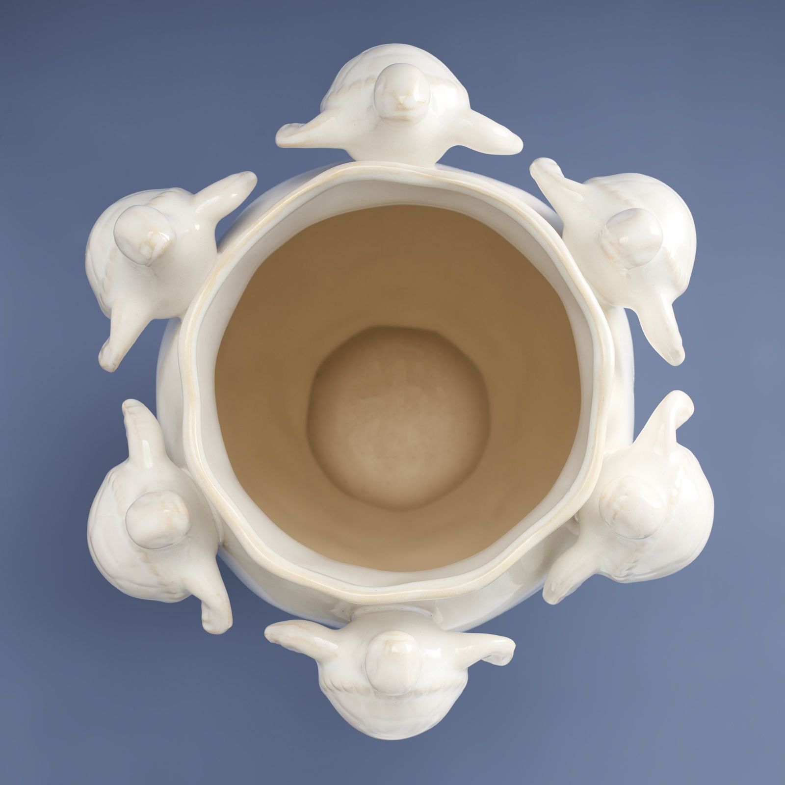 Vasen med skilpadder fra WERNS® forener en delikat form med lekne detaljer, noe som gjør den til et midtpunkt med symbolsk karakter. Den slanke beholderen i hvit keramikk imponerer med sin klare silhuett, brutt i den øvre kanten av små, fint detaljerte skilpaddefigurer. Disse skaper en sjarmerende kontrast til den enkle formen og gir designet et snev av eksotisme og letthet. Enten som solitaire eller med en blomsterbukett – denne vasen er et dekorativt høydepunkt med personlighet.