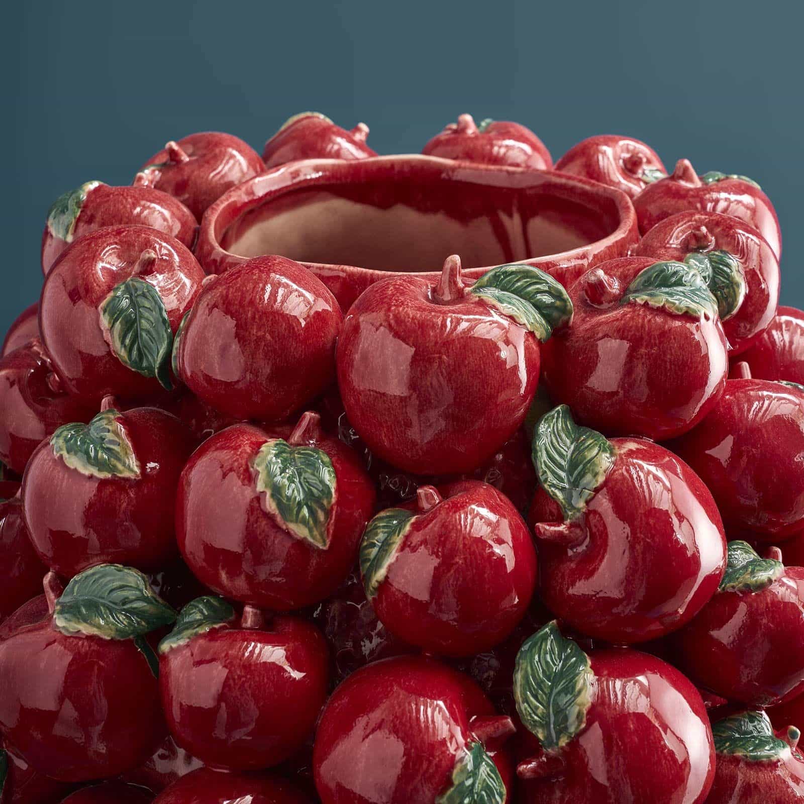 WERNS® demonstrerer med Æblevasen, hvordan hverdagsmotiver kan blive designklassikere. Vasen er håndlavet og dekoreret med røde keramikæbler med smukt detaljerede grønne blade. Resultatet: et levende, muntert og eksklusivt dekorativt tilbehør, perfekt til spiseborde, køkkenhylder eller som gaveidé.