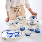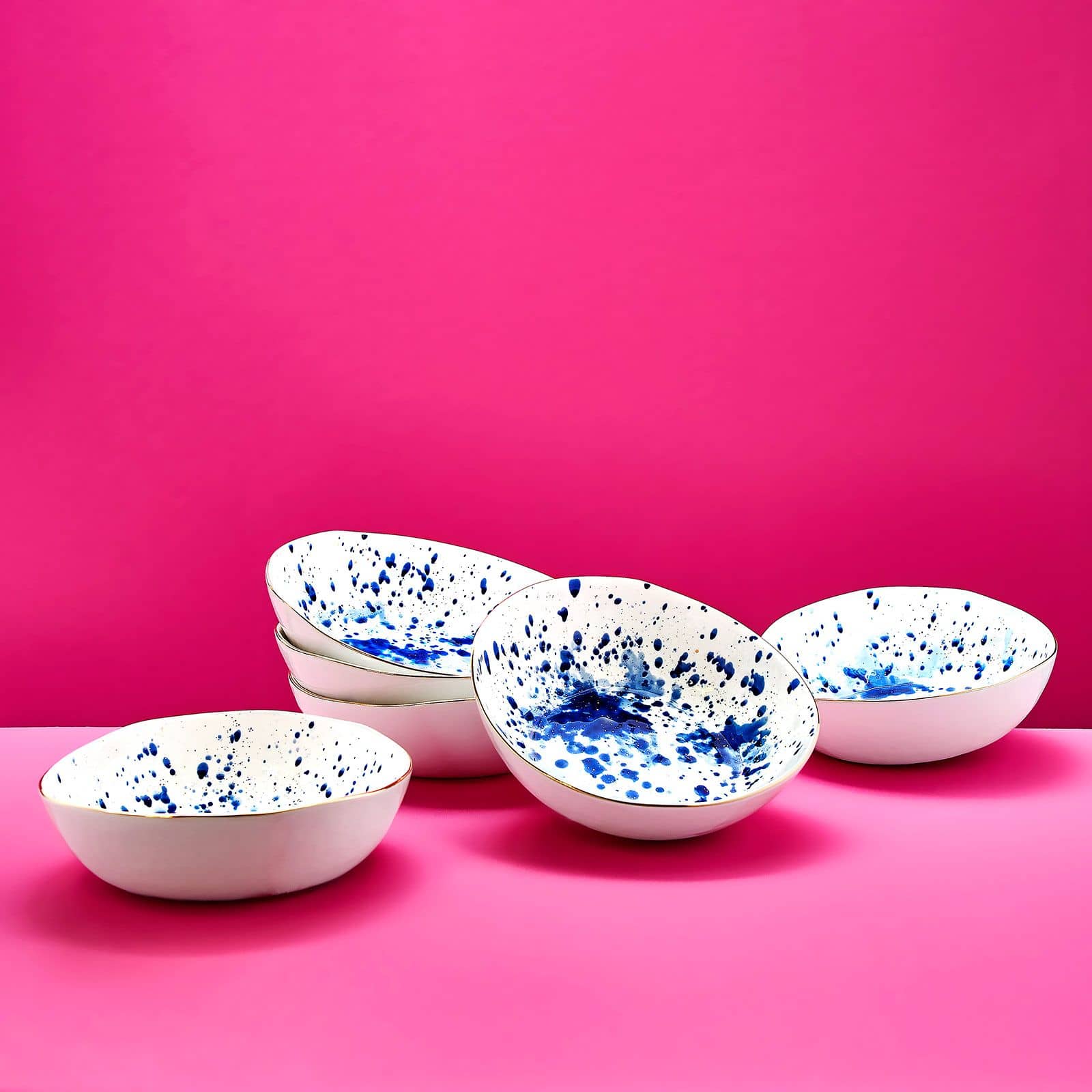 Sett med 6 salatfat Marine Splash, hvit/blå/gull