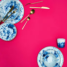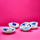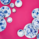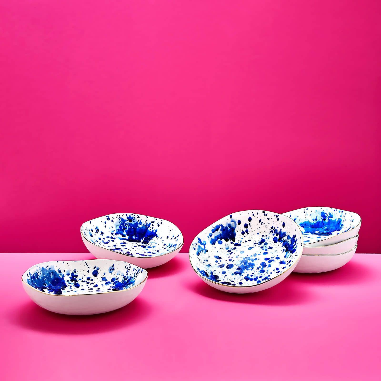Sett med 6 suppetallerkener Marine Splash, hvit/blå/gull