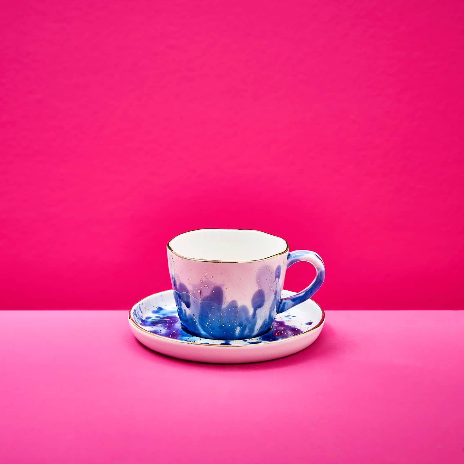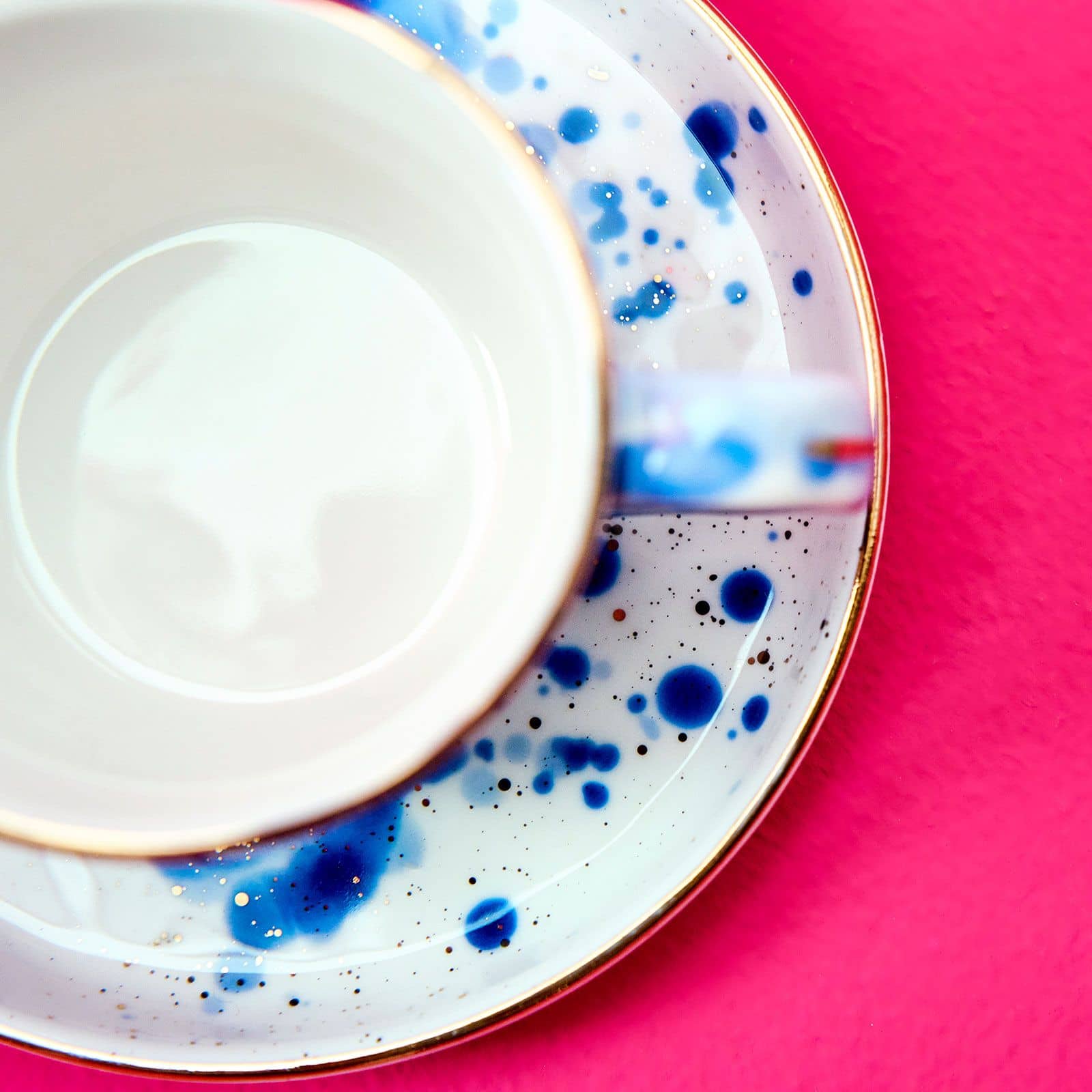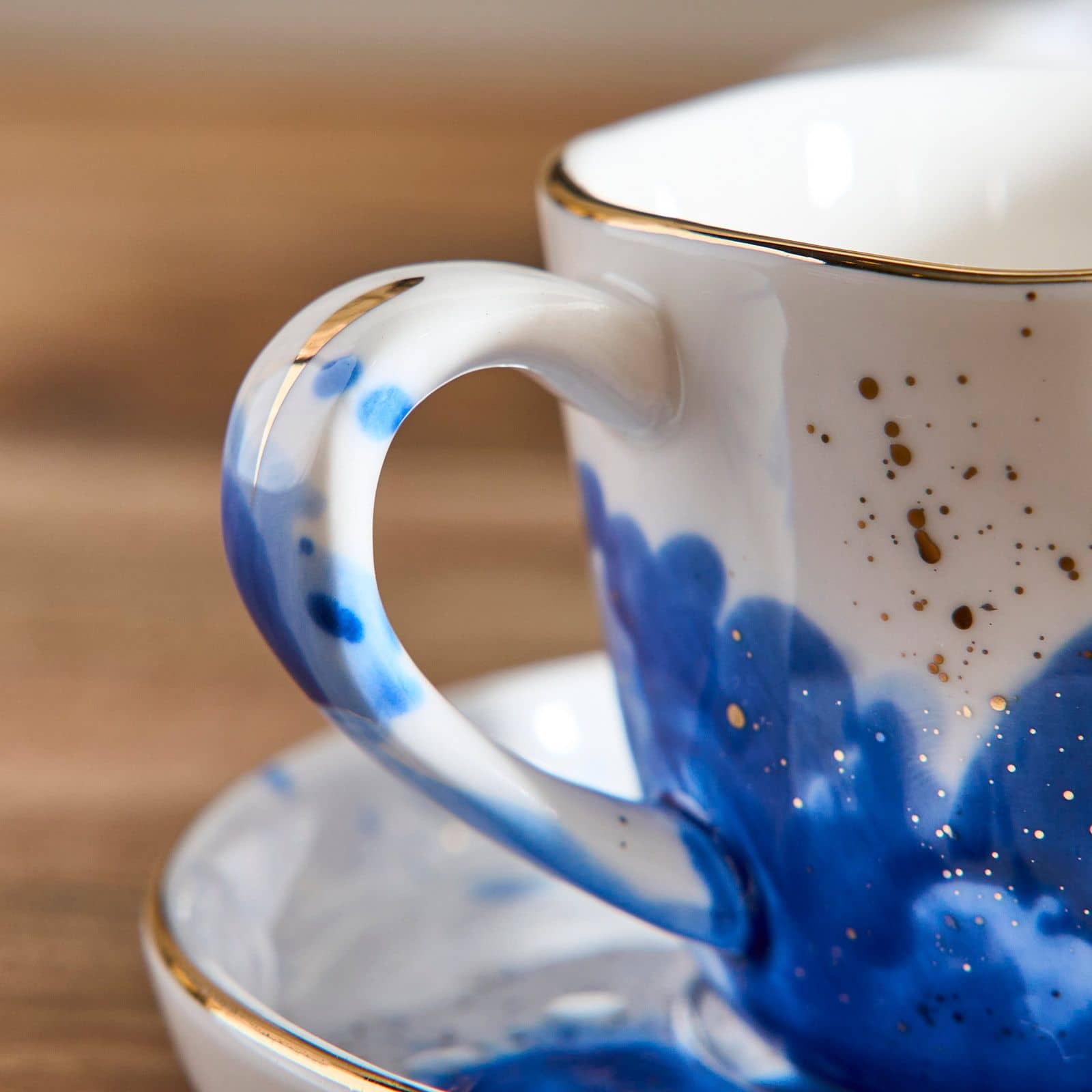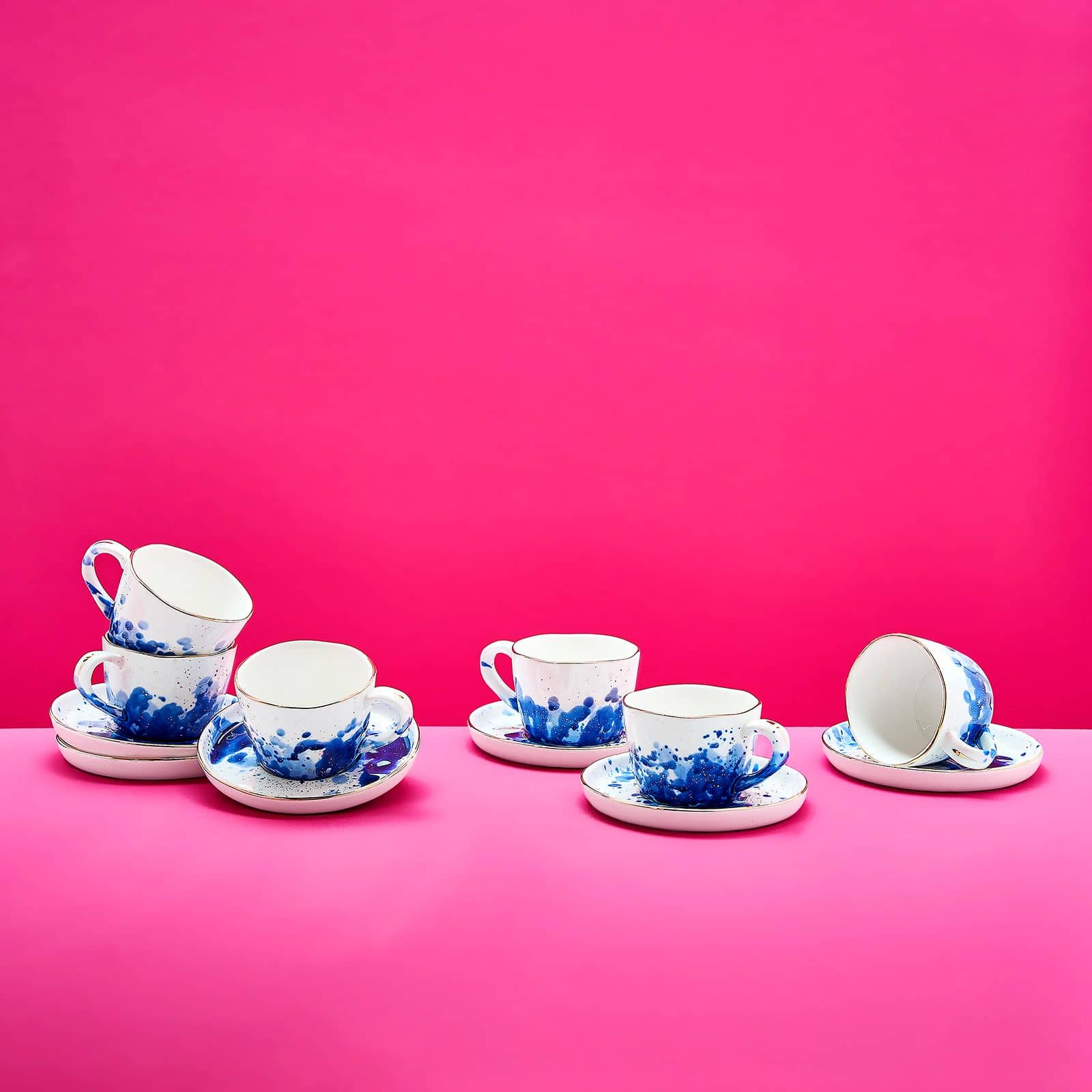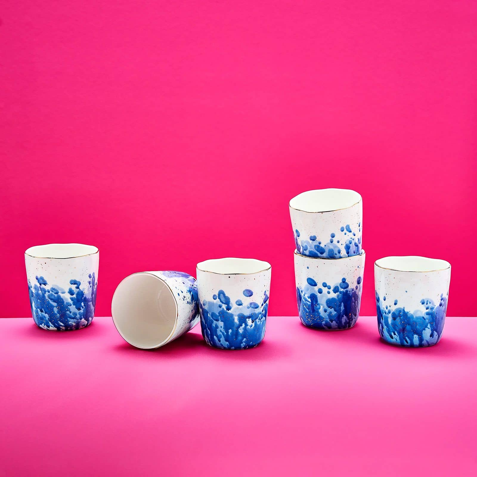 Sett med 6 espressokopper Marine Splash, hvit/blå/gull