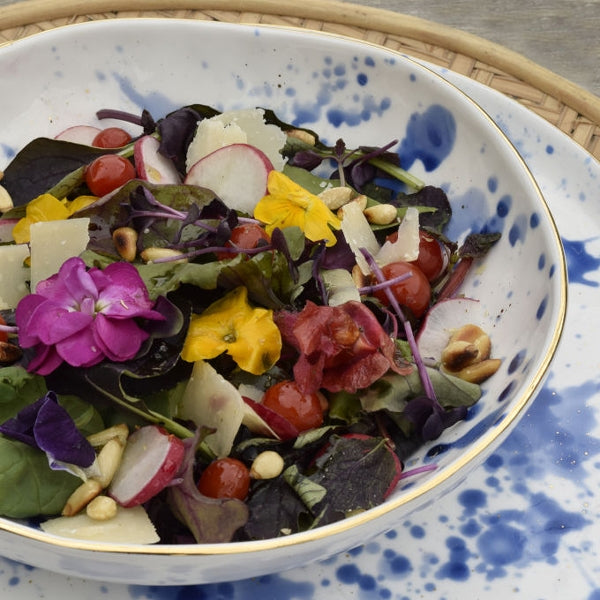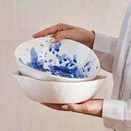 Sett med 6 salatfat Marine Splash, hvit/blå/gull