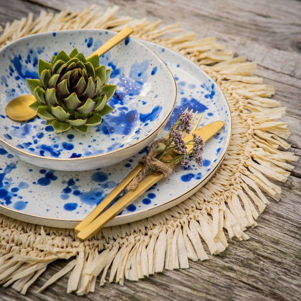 Sett med 6 middagstallerkener Marine Splash, hvit/blå/gull