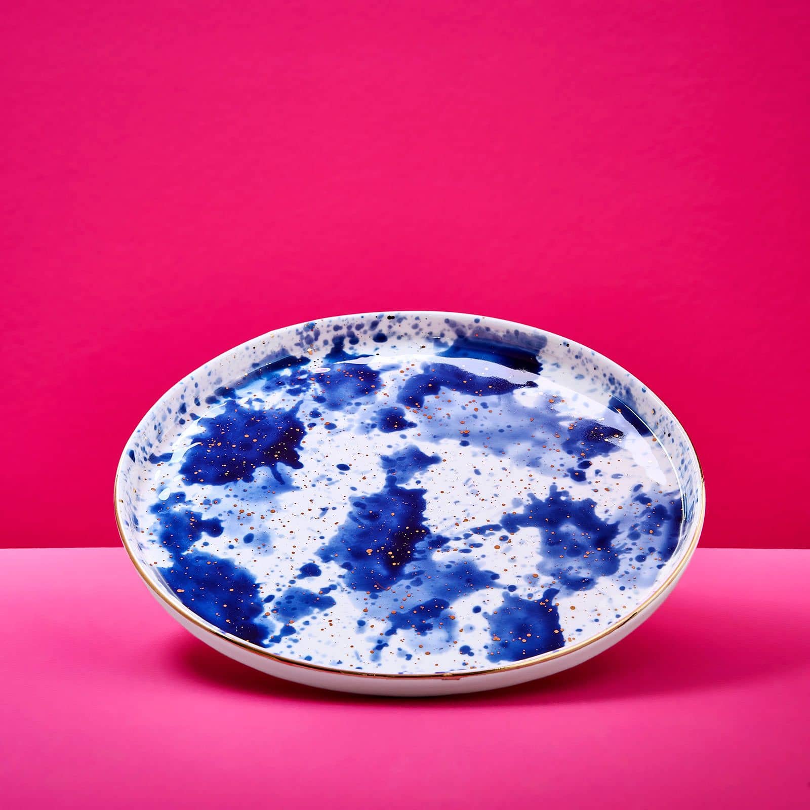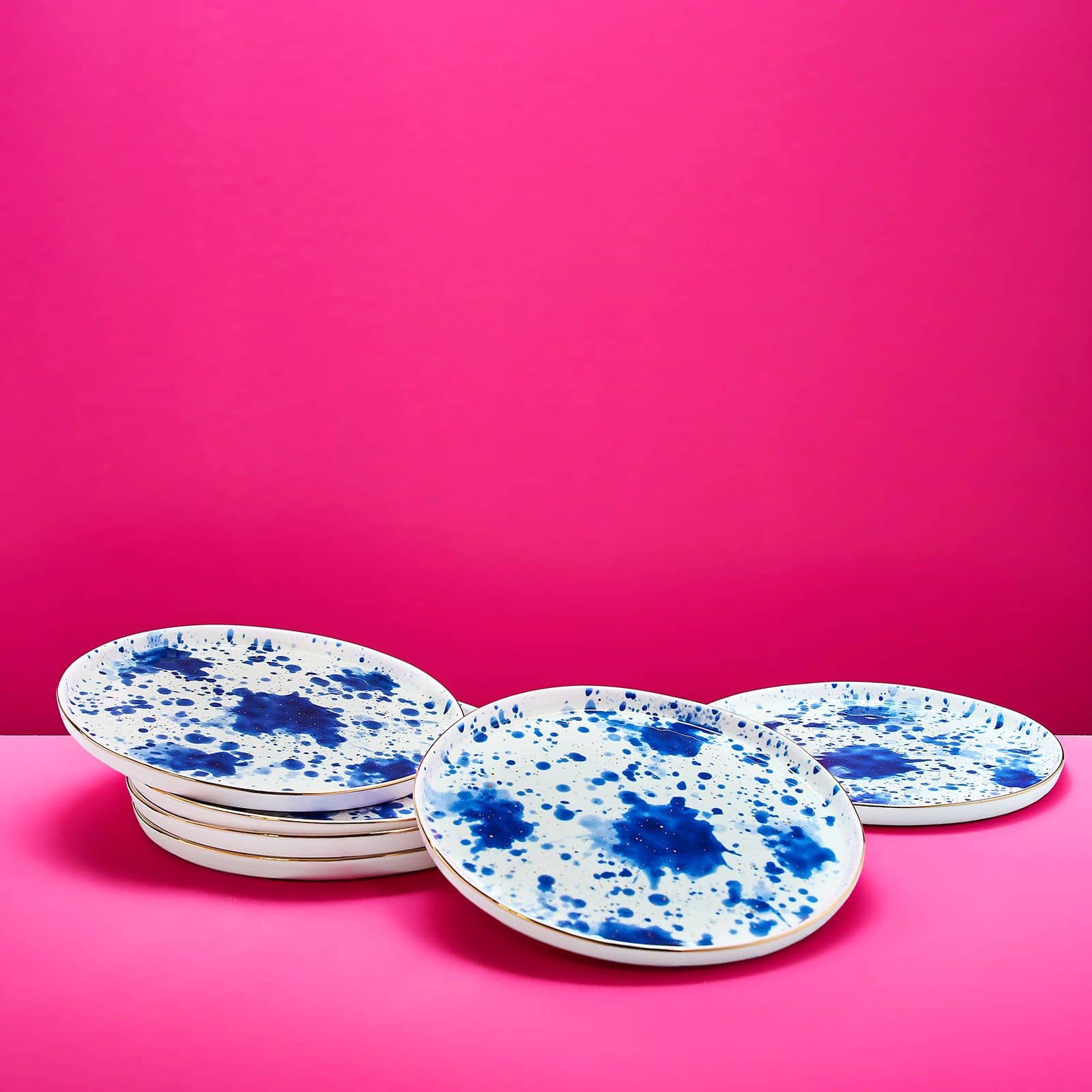 Sett med 6 desserttallerkener Marine Splash, hvit/blå/gull
