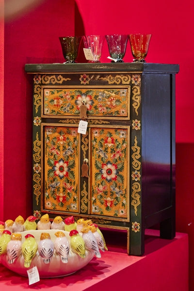Spektakulært håndmalet træskab. Dette er et sjældent skab.
