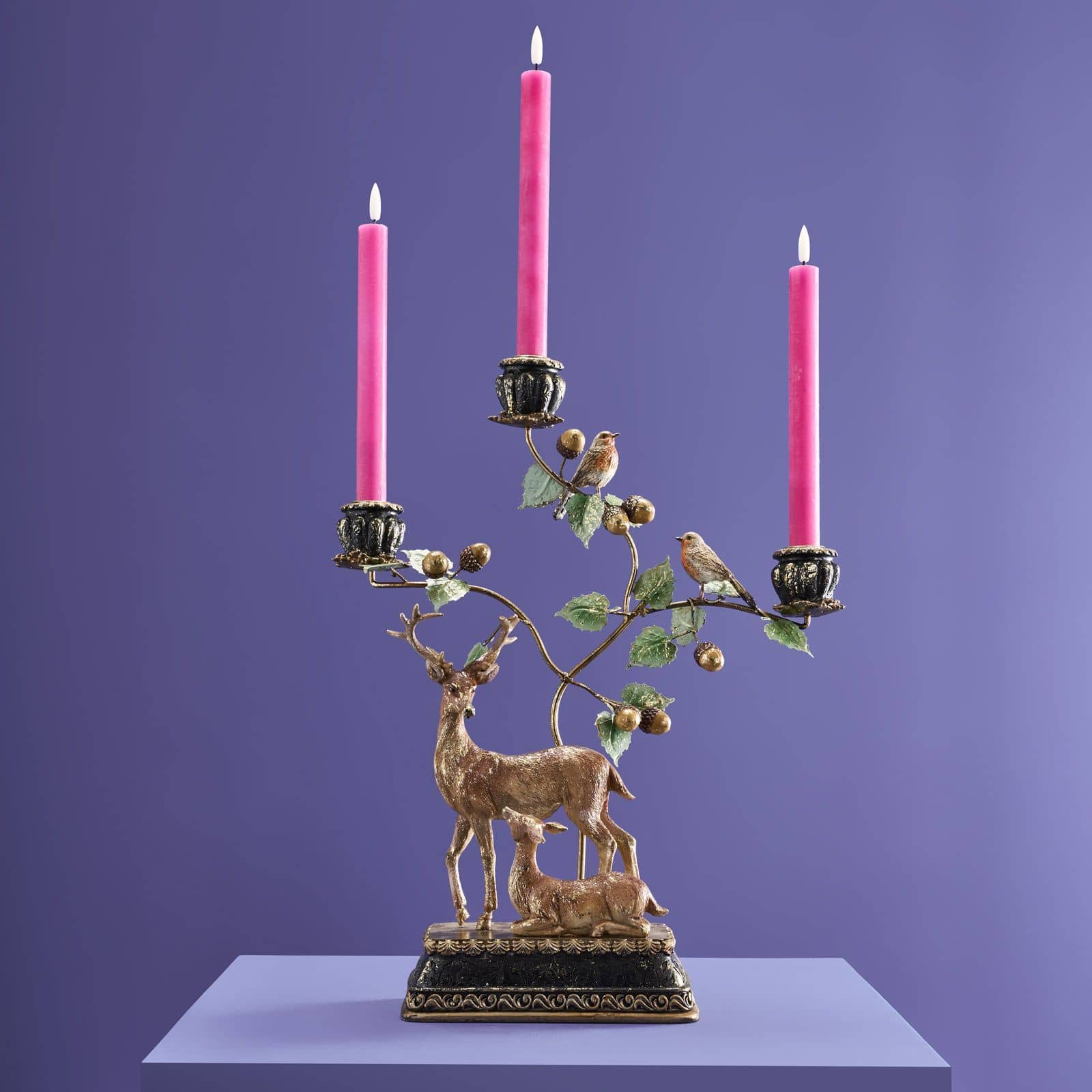 Hjorte og fugle 3-armet lysestage