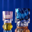 Gi hjemmet ditt et lekent, og fargerikt løft med disse dekorative lysestakene i glass. De vakre kombinasjonene av blått, gult og rosa skaper et levende lysspill som gir rommet varme, energi og personlighet. Når lyset tennes, reflekteres fargene i glasset og skaper en stemningsfull atmosfære som gjør både hverdag og fest litt mer magisk.
