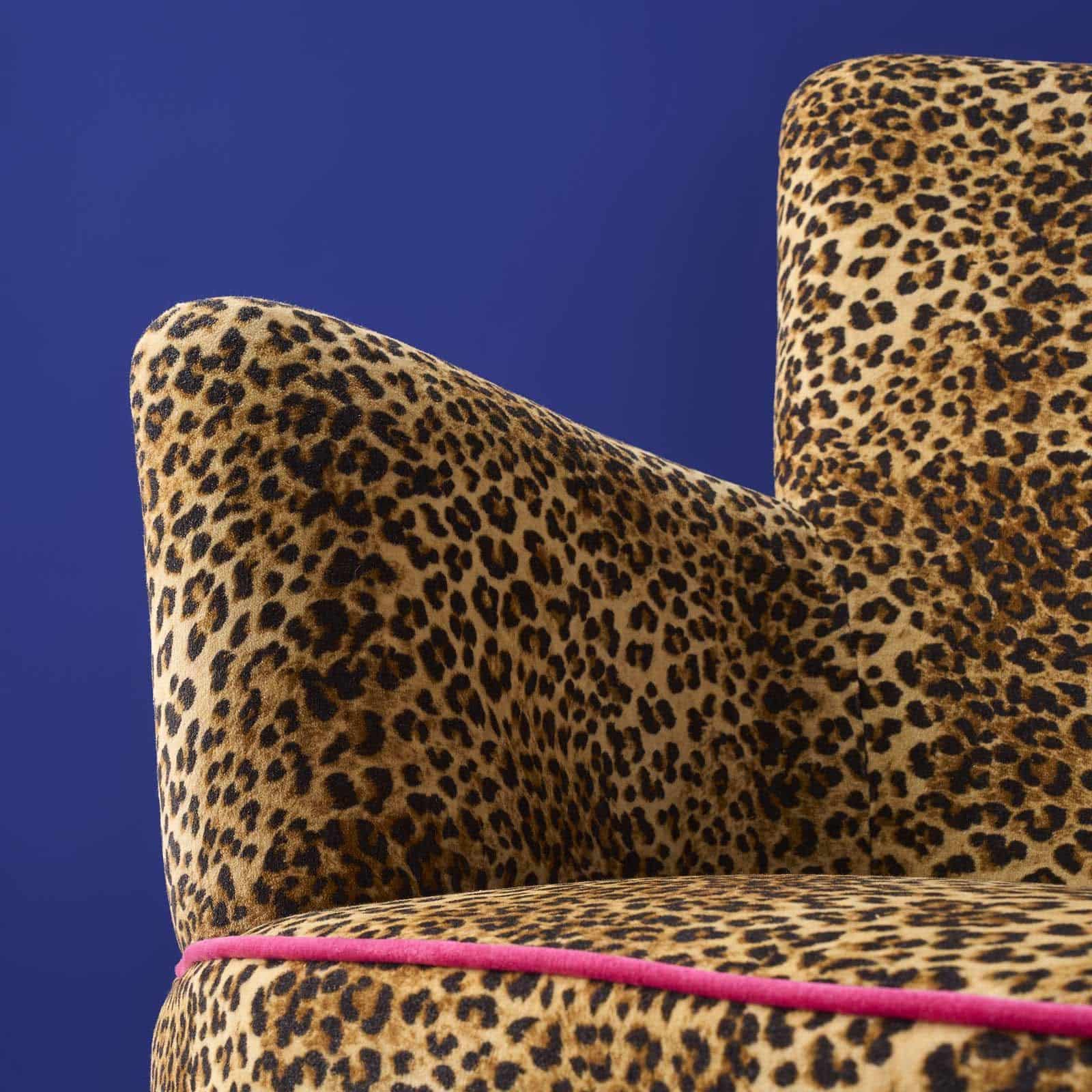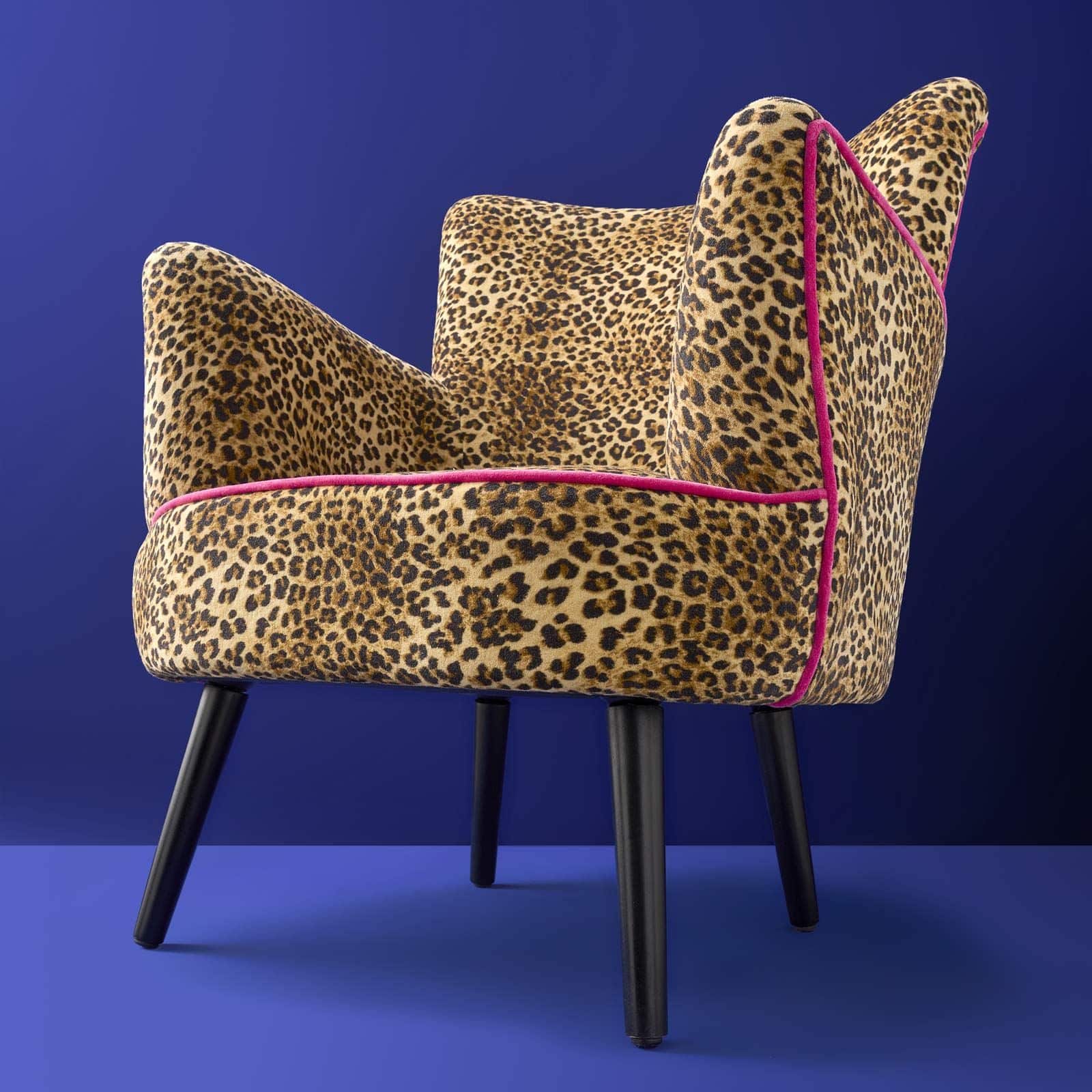 Jungle Love-lænestolen med et slående leopardmotiv kombinerer eksotisk design med håndværk af høj kvalitet. Den solide ramme af 100% mangotræ giver stabilitet og naturlig varme. Stolen er blødt polstret og generøst proportioneret og tilbyder fremragende siddekomfort. Jungle Love er det perfekte midtpunkt til stuer, lounges eller kreative interiører. Et blikfang for designelskere, der leder efter noget ud over det sædvanlige.