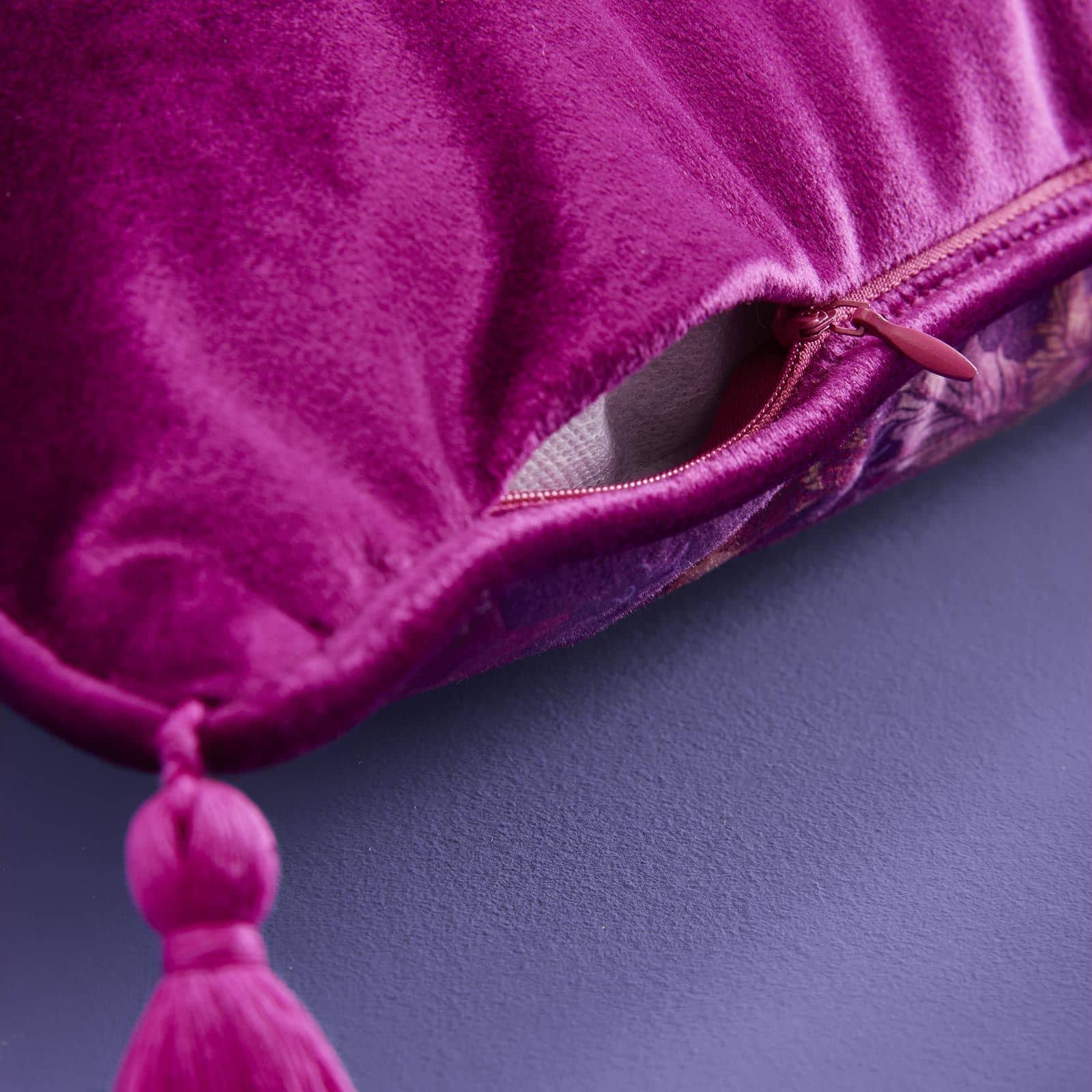 Bagsiden er ensfarvet magenta