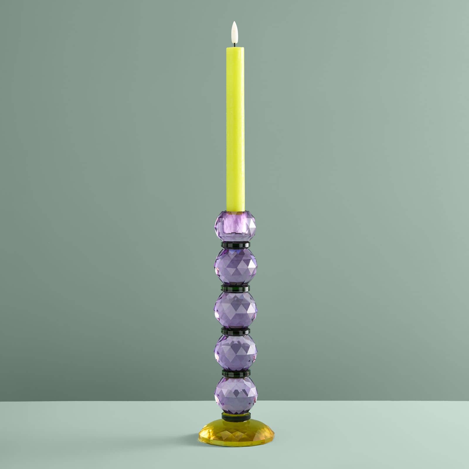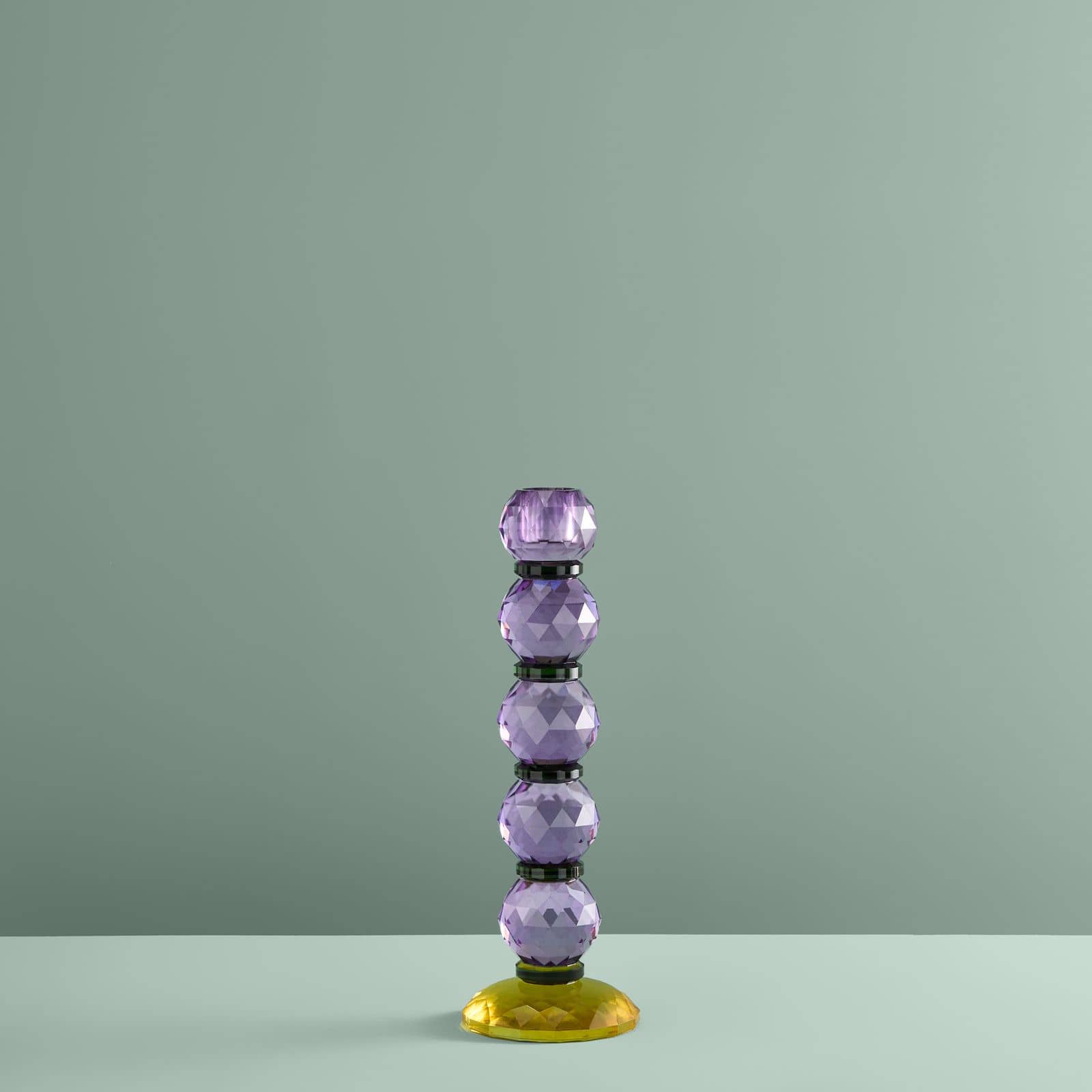 Fancy Crystal Lysestake lilla/gul Rund 27cm