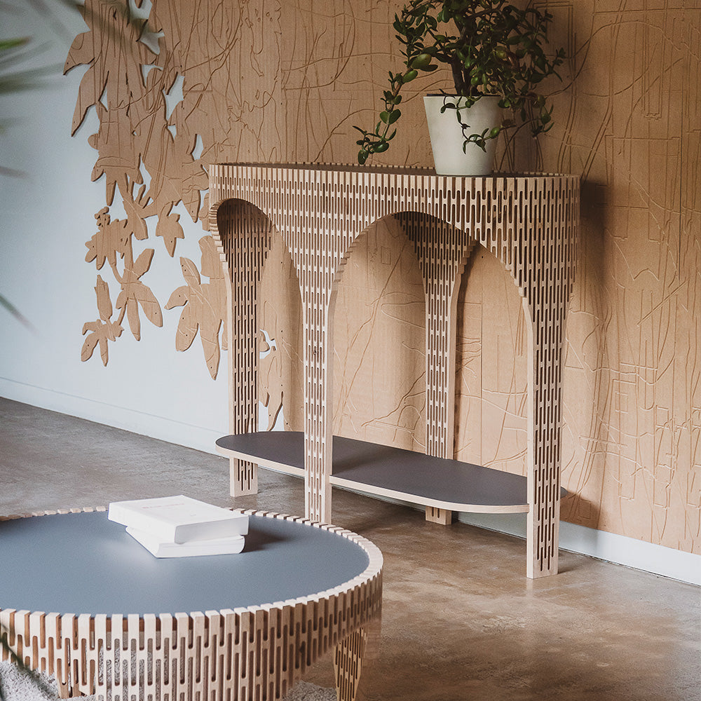 Konsoll - L. 122 x P. 42 x H. 91 cm - Design Frederik Delbart - Materialer: Heltre eik og FENIX® - Laget i Frankrike