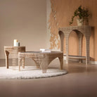 Som det første stykket i Roma-kolleksjonen, tolker Colisée-sofabordet den majestetiske arkitekturen til Romerrikets største amfiteater på nytt. Den sirkulære, åpne eikebasen fremkaller rytmen til gamle buer, mens den dyp mattgrønne Fenix®-bordplaten gir et moderne preg. Med målene Ø 80 cm x H 35 cm blir dette salongbordet et sentralt element i stuen, perfekt for å organisere et hyggelig rom.
