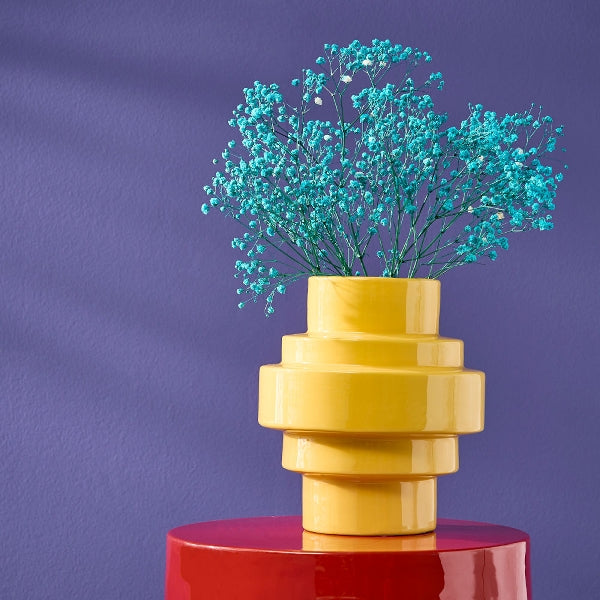 Håndmalt vase i Dolomitt gul/turkis